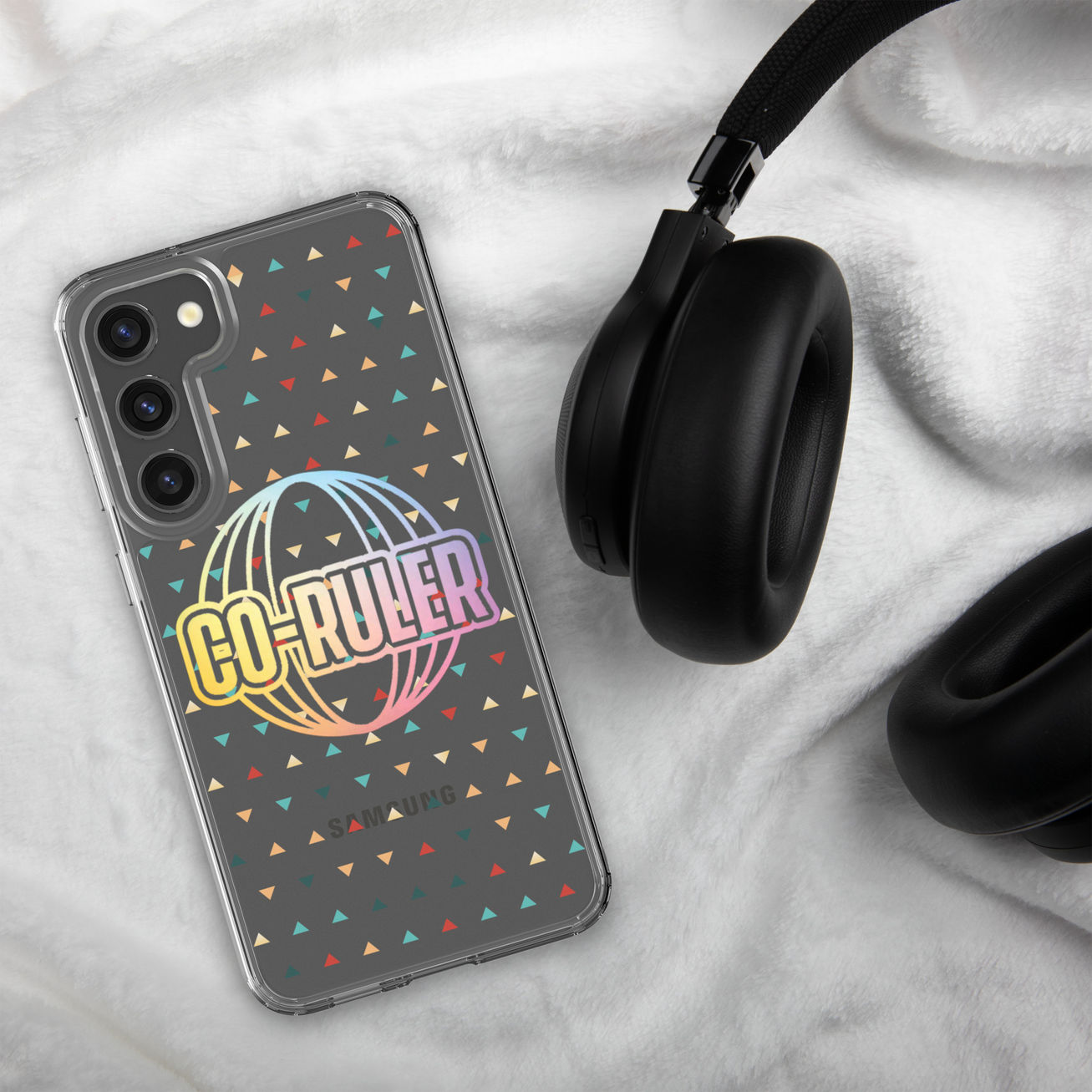 This "CO-RULER" Samsung phone case combines style and durability for everyday use. With a vibrant design featuring the bold "CO-RULER" emblem over a colorful geometric background, it's perfect for those who want to make a statement while protecting their phone. This sleek Samsung® case protects your phone from scratches, dust, oil, and dirt. It has a solid back and flexible sides that make it easy to take on and off, with precisely aligned cuts and holes.