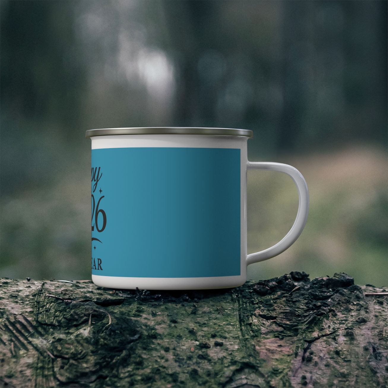 Bright, durable enamel camping mug that brings cozy mornings and spirited toasts to life. Lightweight and rust-resistant, its vivid teal wrap and cheerful “Happy 2026 — New Year” design feels like a little celebration with every sip. The rounded rim and compact 12 oz size make it easy to hold by the campfire, in a tiny kitchen, or while packing for a weekend road trip. It won’t weigh down your gear, and the stainless steel core keeps it reliably stain- and corrosion-resistant for years of adventures. A simple, joyful piece that slips into everyday rituals — from quiet dawn coffees to clinking cups at a backyard countdown.