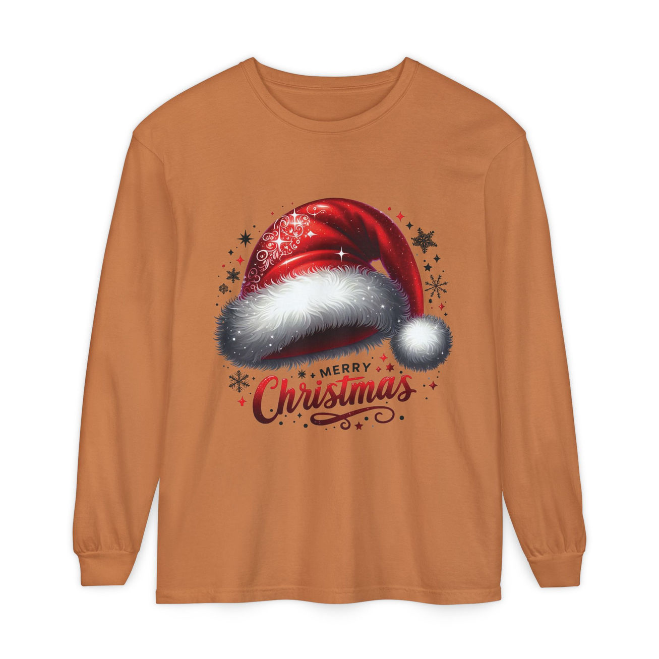 Santa Hat Merry Christmas Long Sleeve Tee | Christmas Shirt