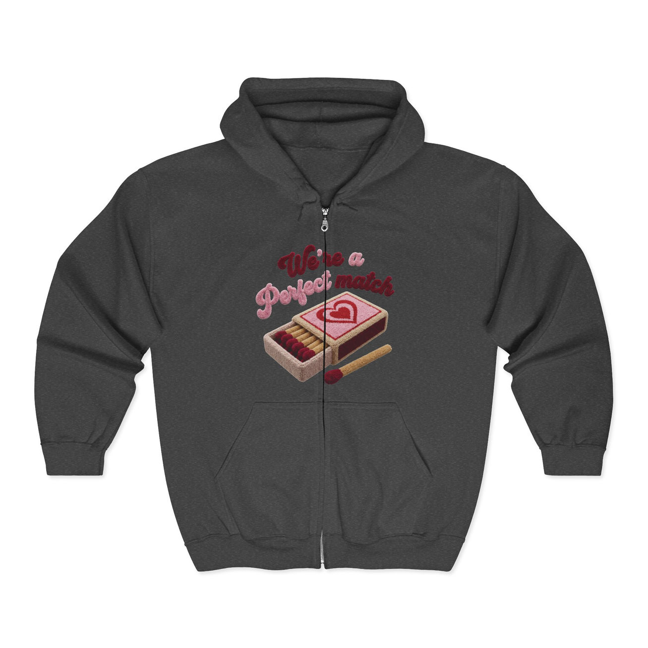 This zip-up hoodie brings a cozy, nostalgic vibe to chilly days with a playful retro matchbox and heart design on the chest. The garment’s medium-heavy 50/50 cotton-poly blend feels substantial without being stiff, and the tubular knit construction gives a smooth, seam-free silhouette. A metal zipper and adjustable hood add practical durability, while roomy front pockets hold essentials when you’re out and about. It wears like a classic fit and runs true to size, so you can layer it over tees or flannels and head straight into weekend coffee runs, late-night walks, or relaxed meetups.